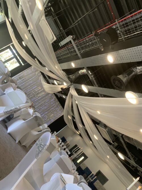 8 Voile ceiling swags with/without lights price includes setup and delivery.