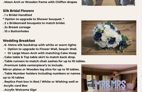 This Package combines all the things that our past customers tell us that they wanted included in a complete wedding package and some more. Everything but the dress package – £2,500.00 35% Discount if booked via the website. Ceremony • Spandex Chair covers & Organza, Satin, taffeta or lace sashes for up to 100 Chairs … Continue reading Everything but the dress package